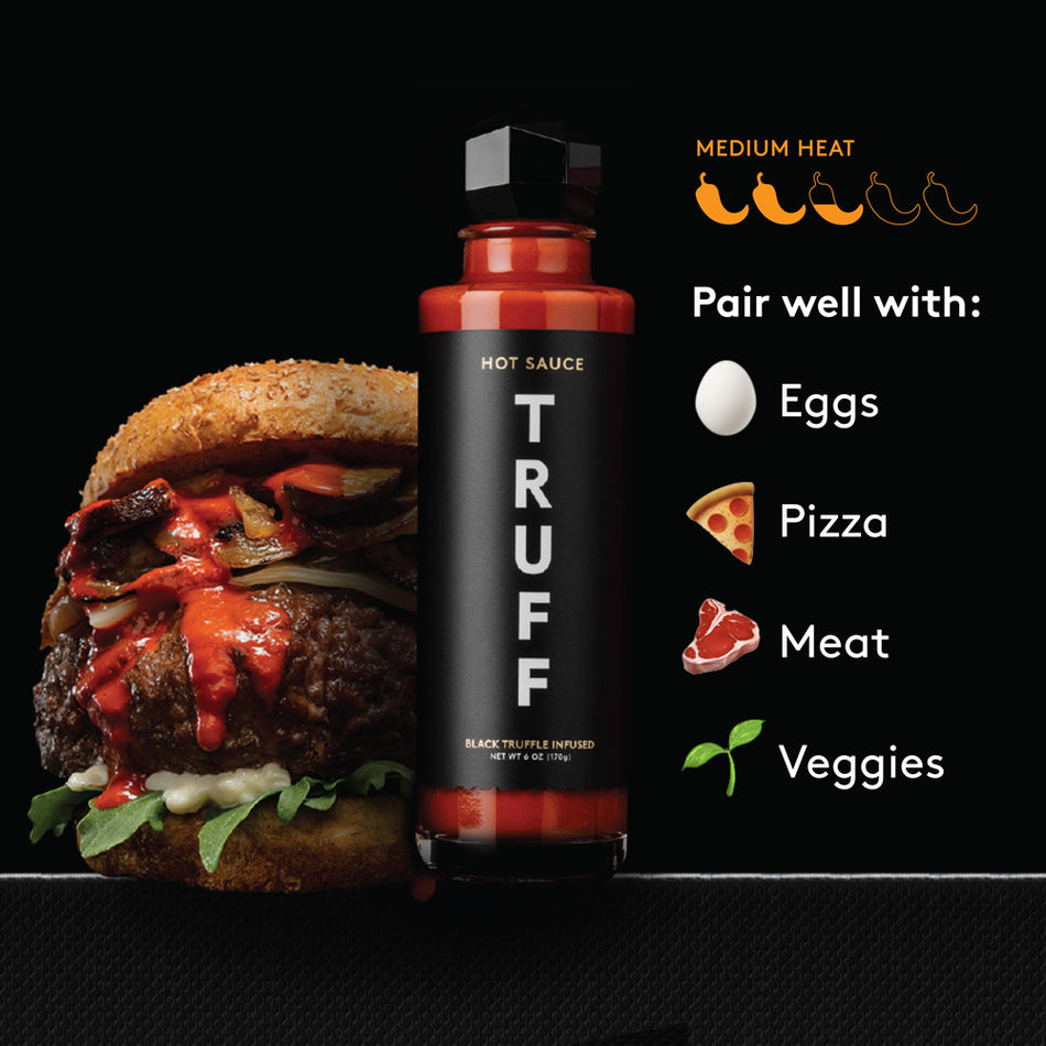 TRUFF’s Signature Hot Sauce is the pinnacle of heat experience with an intricate blend of ripe red chili peppers, real black truffle, agave nectar, and savory spice.